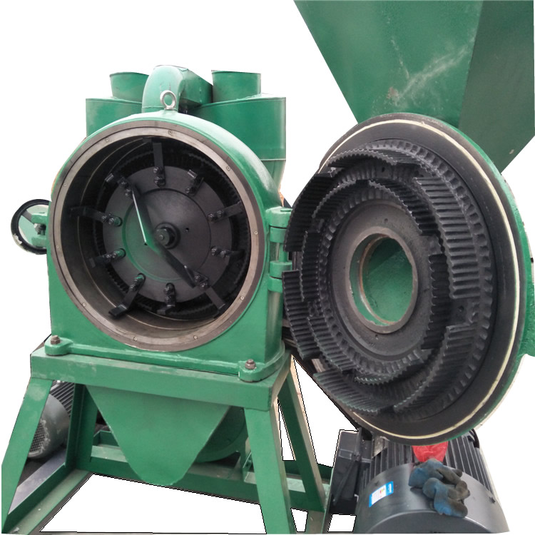 齿盘和固定齿盘问的高速相对运动,使被粉碎物